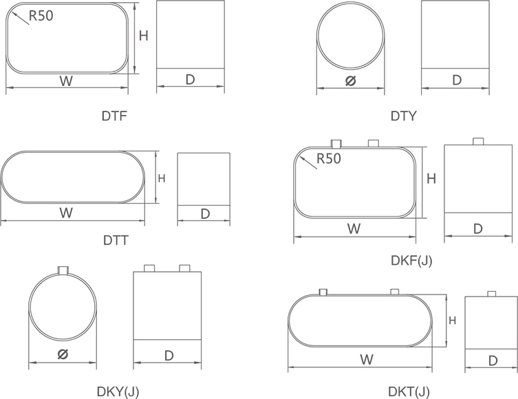 電纜框(筒)是構(gòu)成YB-JGM型貫穿密封裝置的基本結(jié)構(gòu)框架,按安裝位置可分為水平安裝的DK型電纜框和垂直安裝的DT型電纜筒,其形狀有方形(F)、圓形(Y)和橢圓形(T),可用焊接或螺栓連接與艙壁或甲板上。